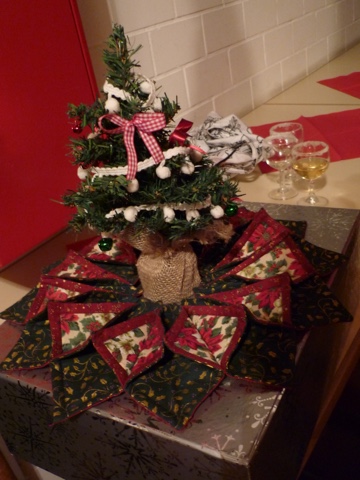 Wir hatten wieder, für unsere Weihnachtsfeier, gewichtelt. Bereits Anfang des Jahres zogen wir Lose mit dem Namen unserer Partnerin, so dass jede Itzenplitzquilterin ihre Wichtelpartnerin kannte. Bis zur Weihnachtsfeier konnten wir auf jeden Fall die Lieblingsfarbe und den Geschmack unserer Partnerin erkunden.